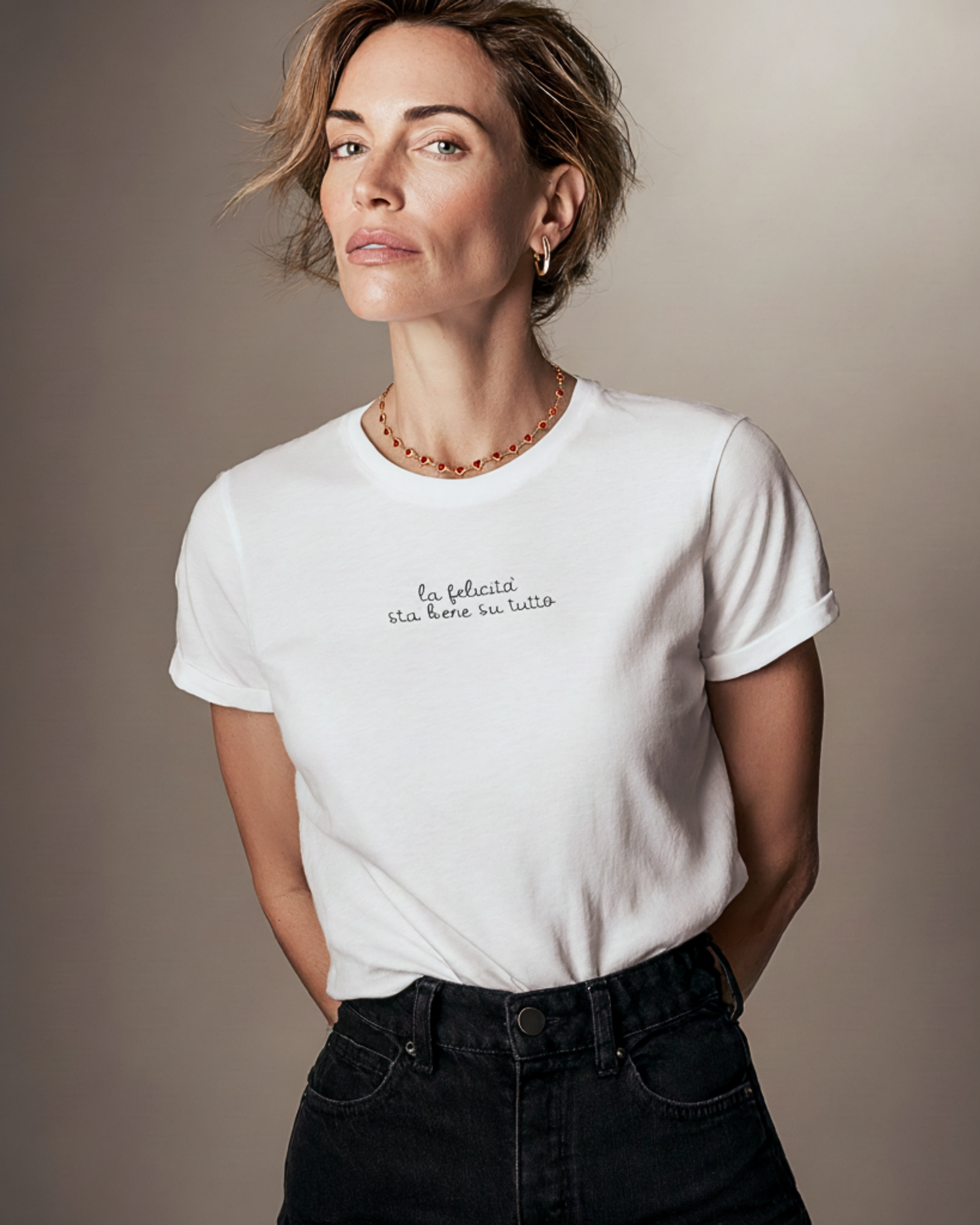 E una t-shirt in cotone, con il cuore ricamato al centro del petto: il punto esatto da cui tutto inizia.